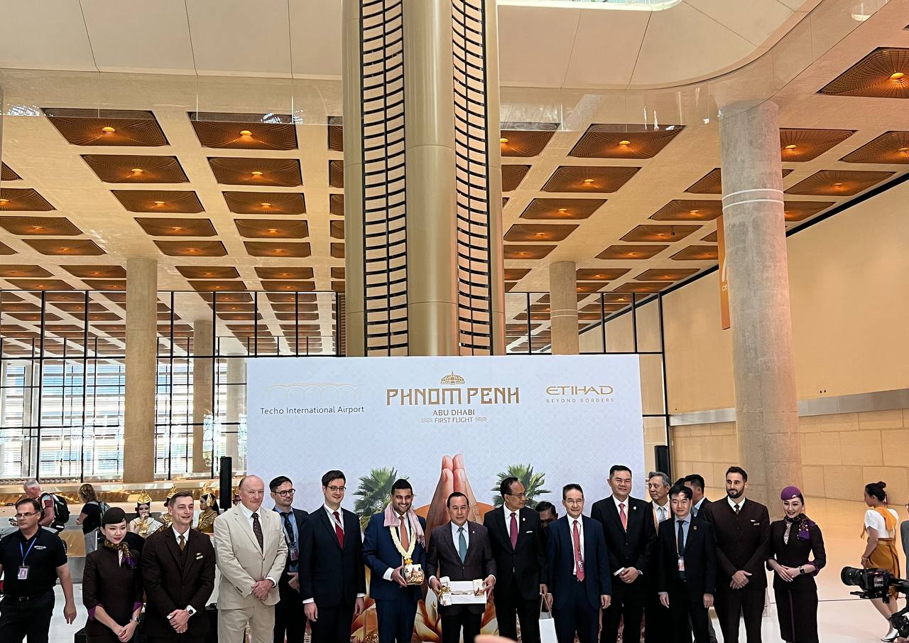 ការទទួលស្វាគមន៍ការមកដល់នៃអ្នកដំណើរ និងជើងហោះហើររបស់ក្រុមហ៊ុន Etihad Airways មានការចូលរួមពីរដ្ឋមន្ត្រីក្រសួងទេសចរណ៍ លោក ហួត ហាក់ និងថ្នាក់ដឹកនាំរដ្ឋលេខាធិការអាកាសចរស៉ីវិល និងស្ថាប័នពាក់ព័ន្ធមួយចំនួនទៀត។