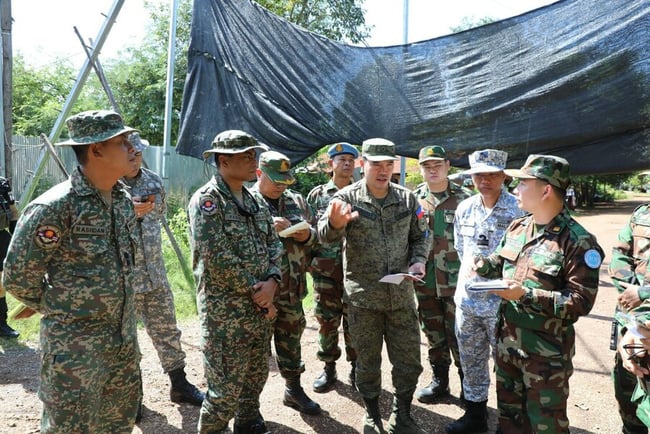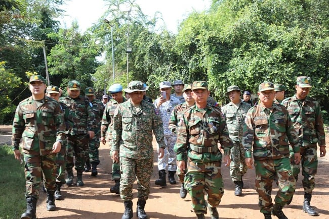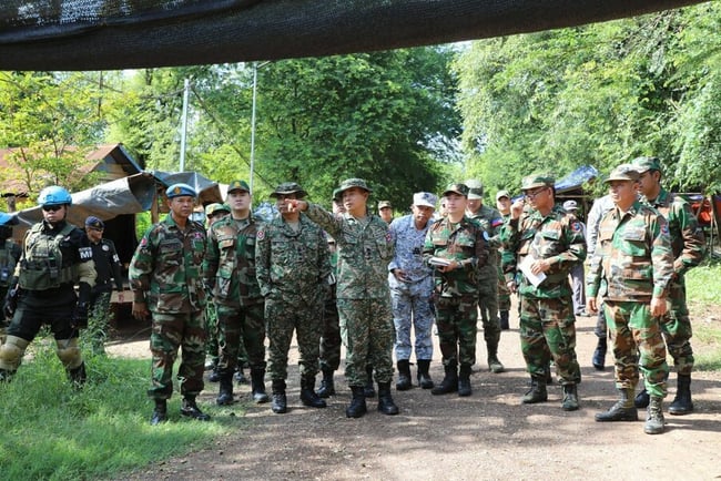 ក្រុមអ្នកសង្កេតការណ៍អន្តរកាល (IOT) ចុះពិនិត្យទីតាំងជាក់ស្តែង នៅភូមិជោគជ័យ ឃុំអូរបីជាន់ ស្រុកអូរជ្រៅ ខេត្តបន្ទាយមានជ័យ ដើម្បីសង្កេតការណ៍ ផ្ទៀងផ្ទាត់ និងរាយការណ៍ នៅស្ថានភាពព្រំដែន ក្រោយបទឈប់បាញ់ចូលជាធរមាន