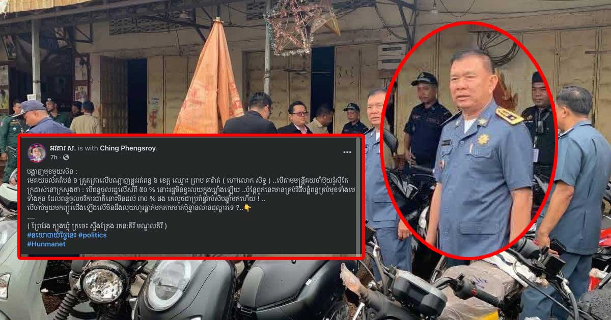 គណនីហ្វេសប៊ុកអវតារ ស. បានបង្ហោះថា មេគយចល័តតំបន់ ៦ ត្រួតត្រាលើបណ្ដាញផ្លូវរត់ពន្ធ ៦ ខេត្ត ឈ្មោះ ព្រាប គារ៉ាត់ ( ហៅលោក សិទ្ធ ) មានគ្រប់វិធីបន្លំពន្ធគ្រប់មុខទាំងមេ ទាំងកូន…