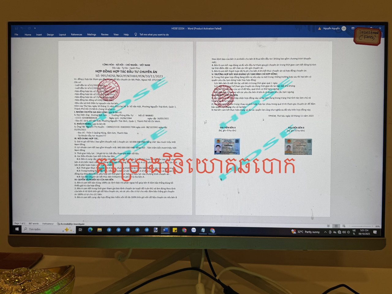 ក្នុងប្រតិបត្តិការបង្ក្រាបនោះ សមត្ថកិច្ចបានឃាត់ខ្លួនជនសង្ស័យបុរសជនជាតិវៀតណាម២នាក់ ទី១៖ ឈ្មោះ PHAN THANH DAT និងទី២៖ ឈ្មោះ PHAN HUU KHANH និងបានដកហូតវត្ថុតាងរួមមាន កុំព្យូទ័រប្រភេទ All in one ចំនួន ៤គ្រឿង, Monitor ចំនួន ២០គ្រឿង និងម៉ាស៊ីន CPU ចំនួន៧គ្រឿង។ ផ្អែកតាមរបាយការណ៍ស្រាវជ្រាវរបស់ សមត្ថកិច្ចជំនាញ បុរសជនជាតិវៀតណាមទាំងពីរ ត្រូវបានសង្ស័យថាជាប់ពាក់ព័ន្ធនឹងការប្រព្រឹត្តអំពើល្មើសច្បាប់ រួមមាន ការប្រព្រឹត្តល្បែងសុីសងខុសច្បាប់ (ហ្គេមអនឡាញ), ការក្លែងឯកសារសាធារណៈសម្រាប់បម្រើការឆបោកជនជាតិវៀតណាម និងការឆបោកក្រោមរូបភាពជា គម្រោងវិនិយោគ។