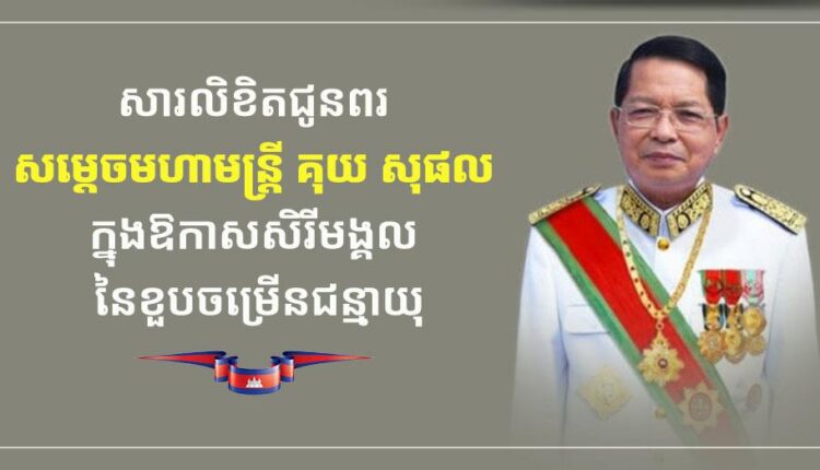 (ភ្នំពេញ)៖ ក្នុងឱកាសដ៏វិសេសវិសាលប្រកបដោយសិរីមង្គលដ៏បវរ នៃពិធីចម្រើនជន្មាយុរបស់ សម្តេចមហាមន្ត្រី គុយ សុផល ឧត្តមប្រឹក្សាផ្ទាល់ព្រះមហាក្សត្រ និងជាឧបនាយករដ្ឋមន្ត្រី រដ្ឋមន្ត្រីក្រសួងព្រះបរមរាជវាំង នៃព្រះរាណាចក្រកម្ពុជា នៅថ្ងៃទី១៥ ខែតុលា ឆ្នាំ២០២៥ ឯកឧត្តម ឃួង ស្រេង អភិបាលរាជធានីភ្នំពេញ និងលោកជំទាវ ព្រមទាំងមន្រ្តីក្រោមឱវាទទាំងអស់ ខ្ញុំសូមចូលរួមសម្ដែងនូវក្តីសោមនស្សក្រៃលែងប្រកបដោយភាពកក់ក្តៅ ជូនចំពោះ សម្តេចមហាមន្ត្រី។