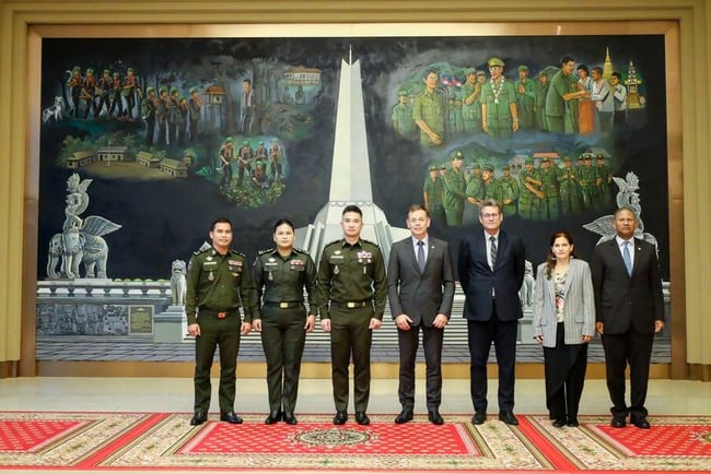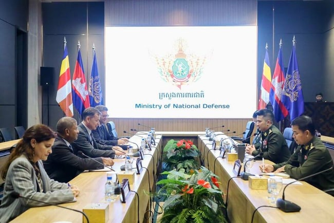 ដោយបានការអនុញ្ញាតពី ឯកឧត្តម នាយឧត្តមសេនីយ៍ ទៀ សីហា ឧបនាយករដ្ឋមន្ត្រី រដ្ឋមន្ត្រីក្រសួងការពារជាតិ ឯកឧត្តម ឧត្តមសេនីយ៍ឯក រ៉ាត់ ដារ៉ារ័ត្ន រដ្ឋលេខាធិការ ក្រសួងការពារជាតិ និងជាប្រធានក្រុមការងារបញ្ជាការដ្ឋានសមរភូមិព័ត៌មាន ក្រសួងការពារជាតិ បានទទួលជួបសម្តែងការគួរសម និងពិភាក្សាការងារជាមួយគណៈប្រតិភូគណៈកម្មាធិការអន្តរជាតិនៃកាកបាទក្រហម (ICRC) ដឹកនាំដោយលោក Jurg Montani ប្រធានប្រតិភូគណៈកម្មាធិការអន្តរជាតិនៃកាកបាទក្រហម ប្រចាំភូមិភាគ ដែលប្រព្រឹត្តទៅនៅទីស្តីការក្រសួងការពារជាតិ នាថ្ងៃទី១៤ ខែសីហា ឆ្នាំ២០២៥។