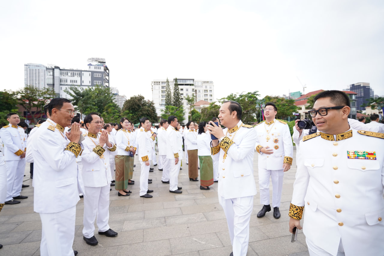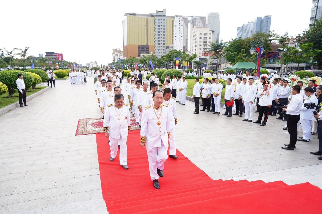 (ភ្នំពេញ)៖ លោក នេត្រ ភក្ត្រា រដ្ឋមន្ត្រីក្រសួងព័ត៌មាន នាព្រឹកថ្ងៃទី១៥ ខែតុលា ឆ្នាំ២០២៥ បានដឹកនាំគណៈប្រតិភូក្រសួង រួមមានរដ្ឋលេខាធិការ និងថ្នាក់ដឹកនាំក្រសួង អញ្ជើញចូលរួមថ្វាយកម្រងផ្កាគោរពព្រះវិញ្ញាណក្ខន្ធ ព្រះករុណាព្រះបាទសម្ដេច ព្រះនរោត្តម សីហនុ ព្រះមហាវីរក្សត្រ ព្រះវររាជបិតាឯករាជ្យ បូរណភាពទឹកដី និងឯកភាពជាតិខ្មែរ «ព្រះបរមរតនកោដ្ឋ»គម្រប់ខួប ១៣ឆ្នាំនៃការយាងសោយទិវង្គតរបស់ព្រះអង្គ នៅមណ្ឌបសួនច្បារខាងកើតវិមានឯករាជ្យ។