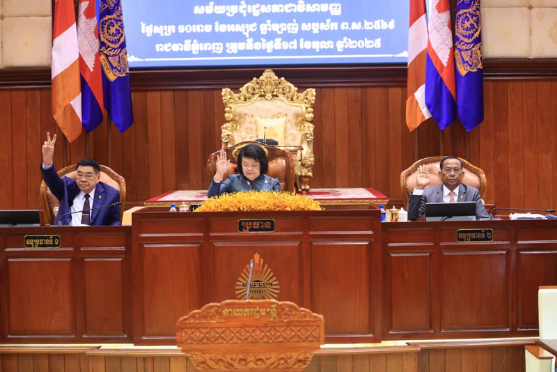 (ភ្នំពេញ)៖ សម្តេចមហារដ្ឋសភាធិការធិបតី ឃួន សុដារី ប្រធានរដ្ឋសភាកម្ពុជា នៅព្រឹកថ្ងៃទី១៧ ខែតុលា ឆ្នាំ២០២៥នេះ បានដឹកនាំកិច្ចប្រជុំរដ្ឋសភាជាវិសាមញ្ញនីតិកាលទី៧ ដើម្បីពិភាក្សា និងអនុម័តសេចក្តីព្រាងច្បាប់ចំនួន៥។