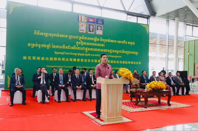 លោកជឿជាក់ថា អាកាសយានដ្ឋានអន្តរជាតិសៀមរាបអង្គរនឹងបន្តបង្កើតភាពរុងរឿងថ្មី និងរួមចំណែកកាន់តែច្រើន ក្នុងការកសាងរួមគ្នា នៃ “ខ្សែក្រវាត់ និងផ្លូវ” រវាងចិន និងកម្ពុជា។ លោកបន្ថែមថា ពិធីសម្ពោធរូបសំណាកទាំងពីរ នៅអាកាសយានដ្ឋាន បានបន្ថែមទិដ្ឋភាពវប្បធម៌យ៉ាងជ្រាលជ្រៅ ដល់ពិធីររម្លឹកខួប ២ឆ្នាំ និង ចាក់បញ្ចូលភាពរឹងមាំ ទៅក្នុងកិច្ចសហប្រតិបត្តិការវប្បធម៌ និង ទេសចរណ៍ ចិន-កម្ពុជា និងបន្ថែម “សាក្សីប្រវត្តិសាស្ត្រ” ដល់មិត្តភាពចិន-កម្ពុជា។