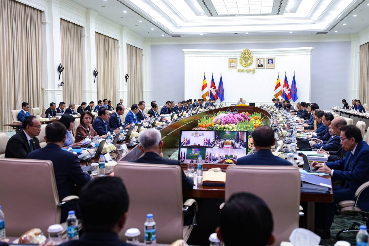 (ភ្នំពេញ)៖ នៅព្រឹកថ្ងៃសុក្រ ទី២៤ ខែតុលា ឆ្នាំ២០២៥នេះ សម្តេចមហាបវរធិបតី ហ៊ុន ម៉ាណែត នាយករដ្ឋមន្ត្រីកម្ពុជា អញ្ជើញដឹកនាំកិច្ចប្រជុំពេញអង្គគណៈរដ្ឋមន្ត្រី នៅវិមានសន្តិភាព។