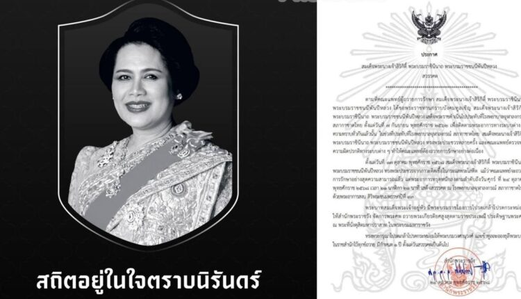 ព្រះមហាក្សត្រី Sirikit បានបាត់ព្រះភក្រ្តចេញពីក្រសែភ្នែកសាធារណជន ចាប់តាំងពីទ្រង់បានទទួលរងជំងឺស្រ្តូក ឬដាច់សរសៃឈាមខួរក្បាល កាលពីឆ្នាំ២០១២មកម្ល៉េះ។ បើតាមសេចក្តីប្រកាសខាងលើរបស់ព្រះរាជវាំងថៃ ស្ថានភាពព្រះរាជសុខភាពរបស់ម្ចាស់ក្សត្រី Sirikit បានឈានដល់កម្រិតធ្ងន់ធ្ងរខ្លាំង កាលពីថ្ងៃទី១៧ ខែតុលា ឆ្នាំ២០២៥ រហូតទីបំផុតធ្វើឱ្យទ្រង់ឈានចូលទិវង្គតតែម្តង កាលពីម៉ោង៩យប់ថ្ងៃទី២៤ ខែតុលា ឆ្នាំ២០២៥ នៅឯមន្ទីរពេទ្យ King Chulalongkorn Memorial Hospital។