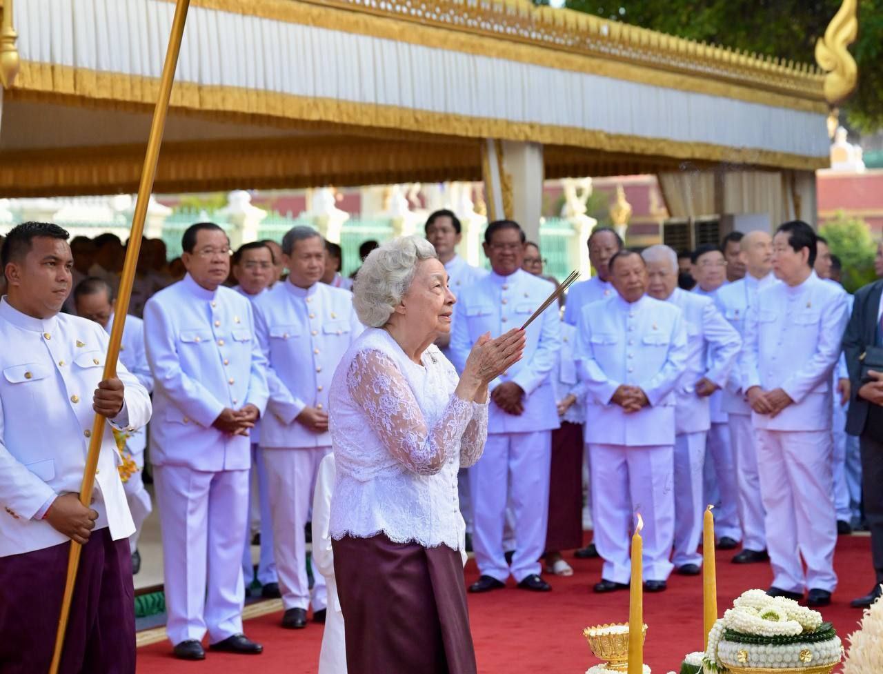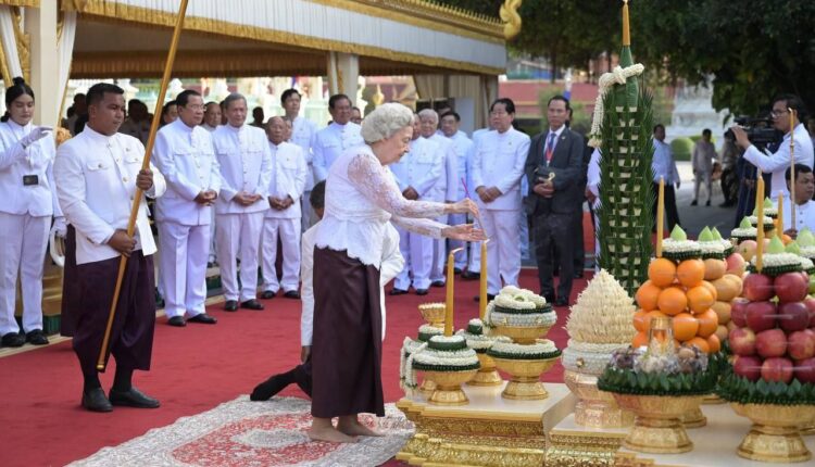 សម្ដេចព្រះមហាក្សត្រី ព្រះរាជតំណាងដ៏ខ្ពង់ខ្ពស់បំផុតរបស់ព្រះមហាក្សត្រ ស្តេចយាងជាព្រះរាជាធិបតី ក្នុងព្រះរាជពិធីបួងសួងសូមចម្រើនសេចក្តីសុខ និងភាពសម្បូរសប្បាយដល់កម្ពុជា នៅព្រះបរមរាជវាំង