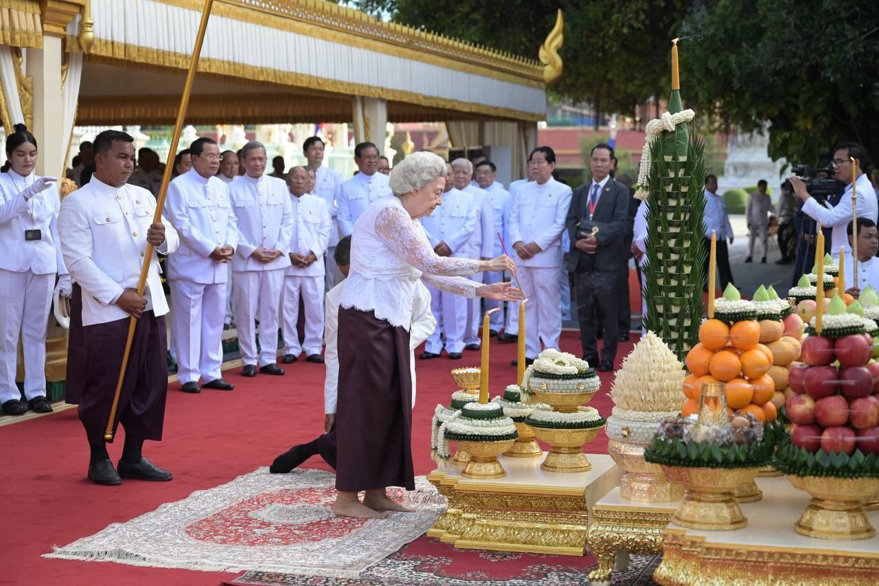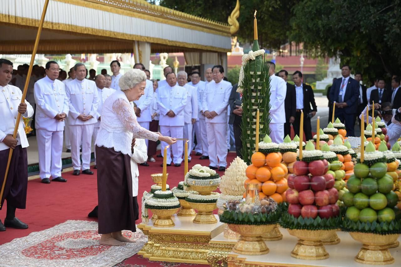 (រាជធានីភ្នំពេញ)៖ នៅព្រឹកថ្ងៃសុក្រ ១០កើត ខែកត្តិក ឆ្នាំម្សាញ់ សប្តស័ក ពុទ្ធសករាជ ២៥៦៩ ត្រូវនិងថ្ងៃទី៣១ ខែតុលា ឆ្នាំ២០២៥នេះ សម្ដេចព្រះមហាក្សត្រី នរោត្ដម មុនិនាថ សីហនុ ព្រះវររាជមាតាជាតិខ្មែរ ក្នុងសេរីភាព សេចក្តីថ្លៃថ្នូរ និងសុភមង្គល ព្រះរាជតំណាងដ៏ខ្ពង់ខ្ពស់របស់ព្រះមហាក្សត្រ បានយាងជាព្រះរាជាធិបតី ក្នុងព្រះរាជពិធីបួងសួងសូមចម្រើនសេចក្តីសុខ និងភាពសម្បូរសប្បាយដល់ព្រះរាជាណាចក្រកម្ពុជា នៅមុខព្រះមហាចេតិយ ព្រះករុណាព្រះបរមរតនកោដ្ឋ ក្នុងបរិវេណព្រះឧបោសថរតនារាមព្រះវិហារព្រះកែវមរកត។