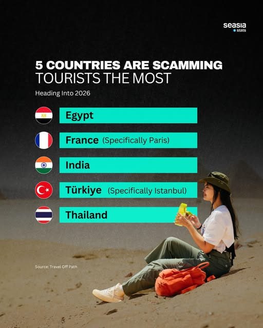 ថៃ ស្ថិតក្នុងចំណោមប្រទេសទាំង៥ដែលកើតមានការឆបោកទេសចរខ្លាំងបំផុតនៅលើពិភពលោក ហើយបើនិយាយត្រឹមក្របខ័ណ្ឌអាស៊ីអាគ្នេយ៍វិញ គឺអ្នកជិតខាងកម្ពុជាមួយនេះ ជាប់លេខមួយតែម្តង។