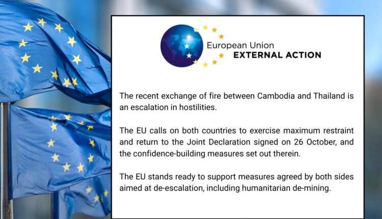 សហភាពអឺរ៉ុប អំពាវនាវដល់កម្ពុជា-ថៃ ឱ្យរក្សាភាពអត់ធ្មត់ខ្ពស់បំផុត និងវិលត្រឡប់ទៅរកសេចក្តីថ្លែងការណ៍រួម
