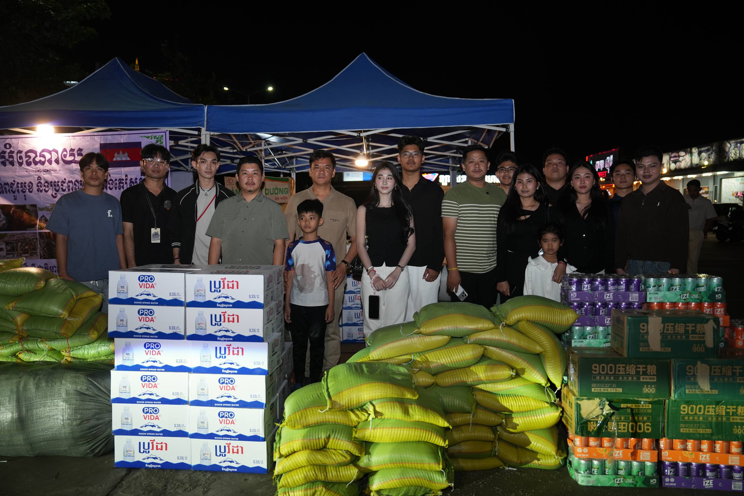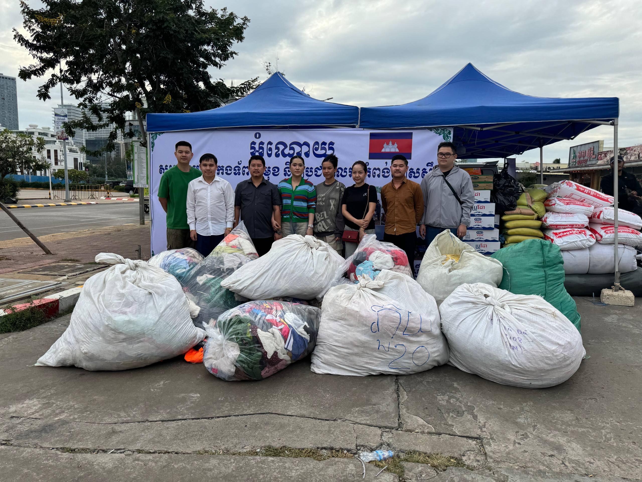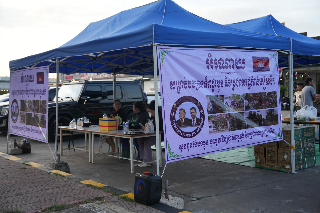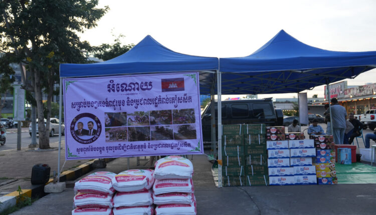 (ភ្នំពេញ)៖ ក្រុមសេនាតេជោសន្តិភាព រង់ចាំទទួលអំណោយ សម្រាប់ជូនដល់វីរកងទ័ពជួរមុខ និងបងប្អូនដែលភៀសសឹក ស្ថិតនៅទីតាំង ទល់មុខស៊ុបចង្កាក់ Volcano កោះពេជ្រ រាជធានីភ្នំពេញ។