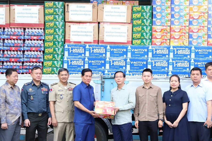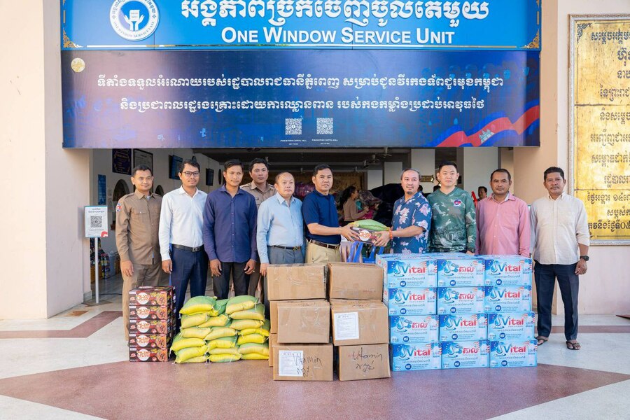 សប្បុរសជនបន្តនាំយកអំណោយជាថវិកា គ្រឿងឧបភោគ បរិភោគ និងសម្ភារប្រើប្រាស់ចាំបាច់ជាច្រើនមុខ ប្រគល់ជូនរដ្ឋបាលរាជធានីភ្នំពេញ នាព្រឹកថ្ងៃទី១៣ ខែធ្នូ ឆ្នាំ២០២៥ ដើម្បីត្រៀមរៀបចំ បែងចែកជូនបងប្អូនវីរកងទ័ពជួរមុខ និងបងប្អូនប្រជាពលរដ្ឋជម្លៀសខ្លួនទៅតាមមណ្ឌលសុវត្ថិភាពនានា ក្រោយពីការផ្ទុះសង្គ្រាមជាថ្មីពីក្រុមទាហានថៃឈ្លានពានចូលបូរណភាពទឹកដីកម្ពុជា។
