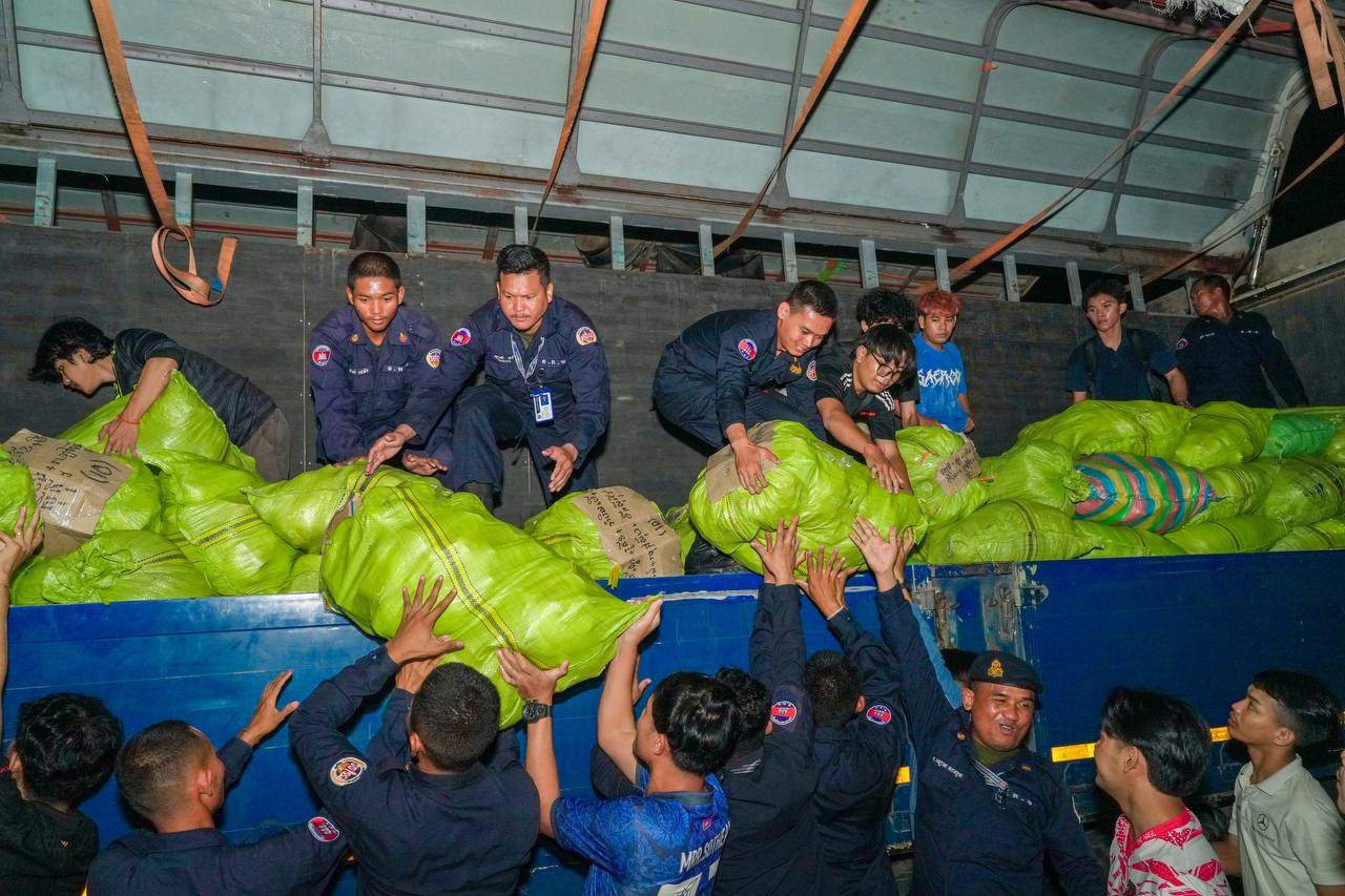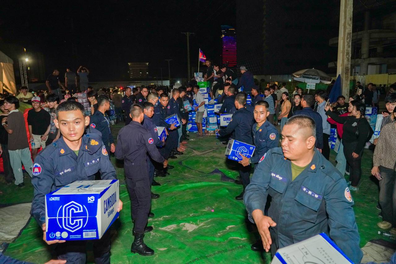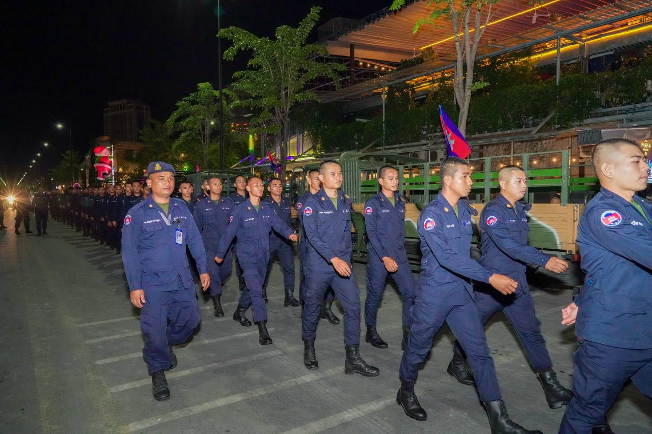 (ភ្នំពេញ)៖ កម្លាំងអាវុធហត្ថរាជធានីភ្នំពេញ នាយប់ថ្ងៃទី១៣ ខែធ្នូ ឆ្នាំ២០២៥ បានបន្តចូលរួមការពារសន្តិសុខ សុវត្ថិភាព រក្សាសណ្តាប់ធ្នាប់ និងជួយរៀបចំលើកដាក់ជញ្ជូនស្បៀង និងសម្ភារៈចាំបាច់ផ្សេងៗ ចេញពីទីតាំងកន្លែងទទួលជំនួយសម្រាប់ជូនទៅបងប្អូនជនភៀសសឹក និងបងប្អូនកងទ័ពនៅជួរមុខ ត្រង់ចំណុច ហាង Eatmore បឹងកក់ រាជធានីភ្នំពេញ៕