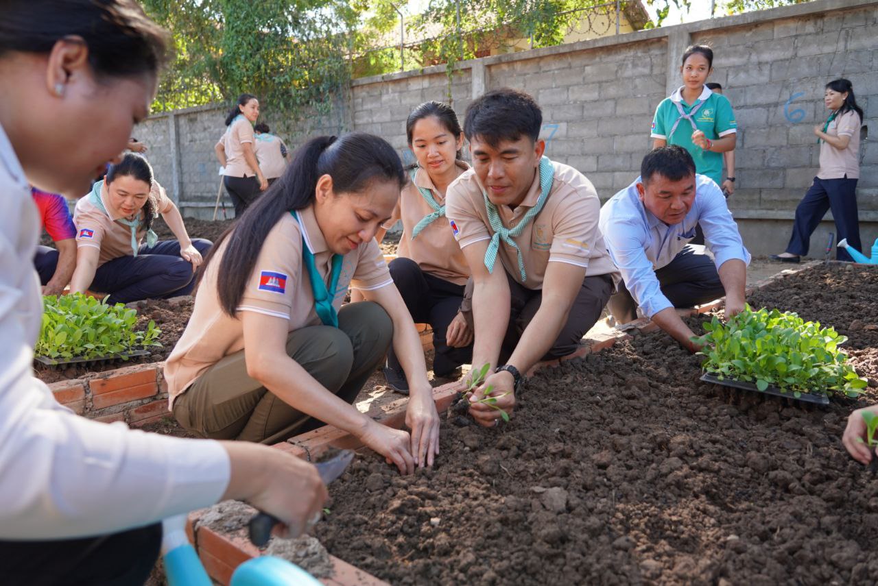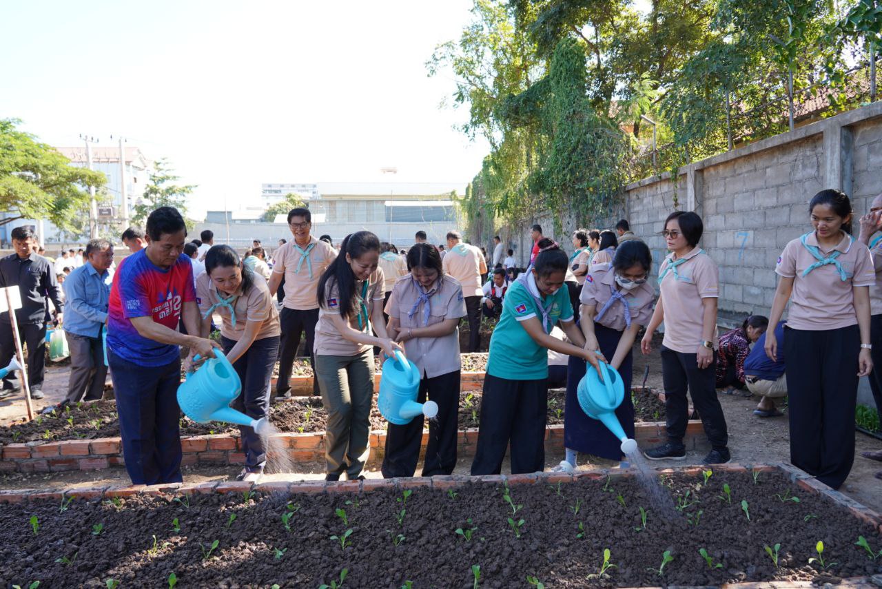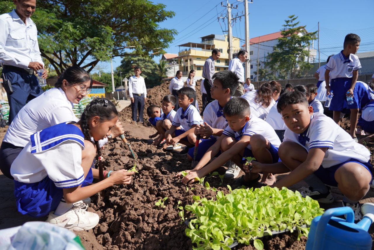 លោកជំទាវបណ្ឌិត ពេជ ចន្ទមុន្នី ហ៊ុន ម៉ាណែត អញ្ជើញចូលរួមដាំបន្លែ ចលនា «យើងរួមគ្នាដើម្បីជាតិ» នាសាលាបឋមសិក្សាភ្នំពេញថ្មី