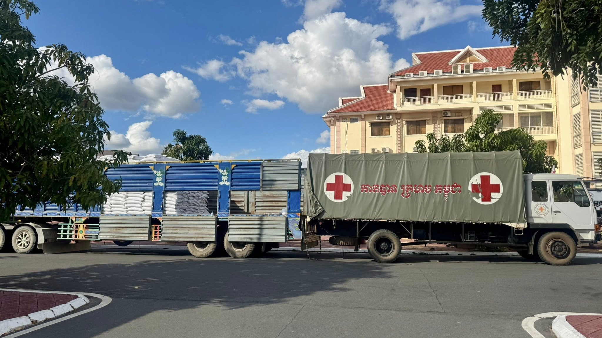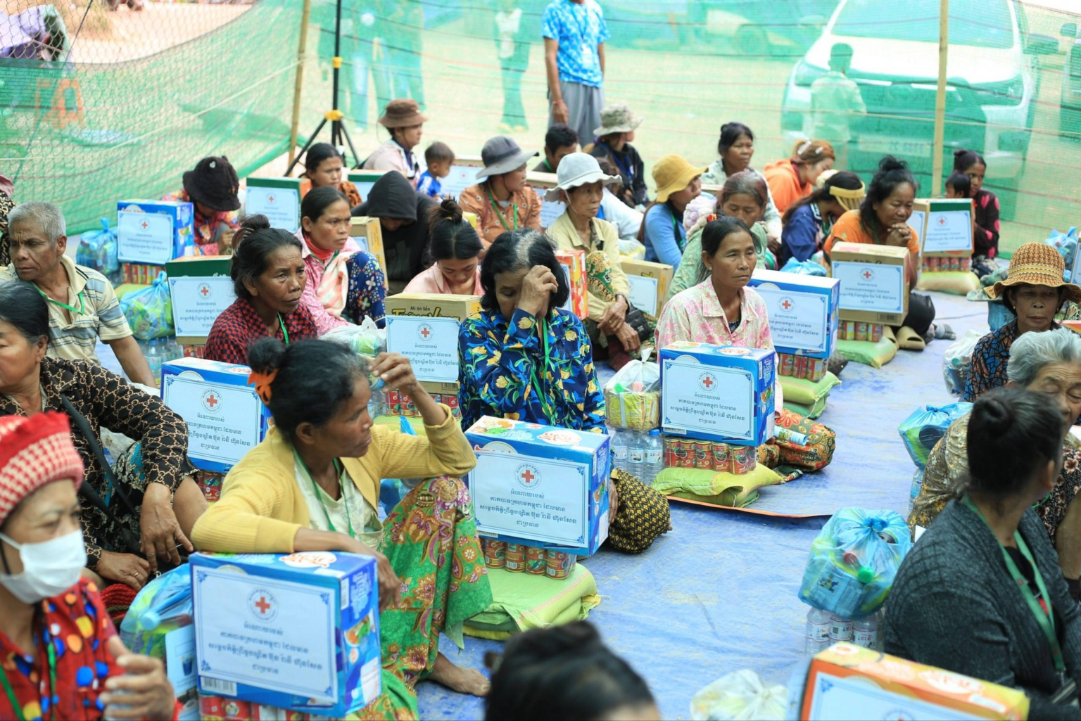 កាកបាទក្រហមកម្ពុជាបានបញ្ចេញអង្ករ១០០តោន ទឹកបរិសុទ្ធ ១០០០កេស និងភេសជ្ជៈផ្អែម ១០០០កេស ដើម្បីយកទៅចែកជូនប្រជាជនភៀសសឹកនៅតាមជំរំសុវត្ថិភាព