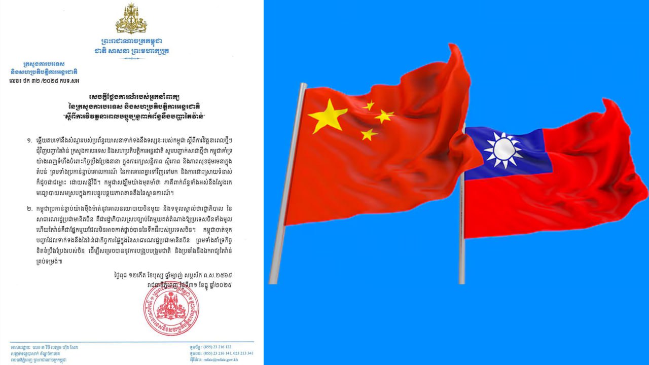 កម្ពុជាសង្ឃឹមយ៉ាងមុតមាំថា ចិន-តៃវ៉ាន នឹងស្វែងរកមធ្យោបាយបន្ធូរបន្ថយភាពតានតឹងនៃស្ថានការណ៍
