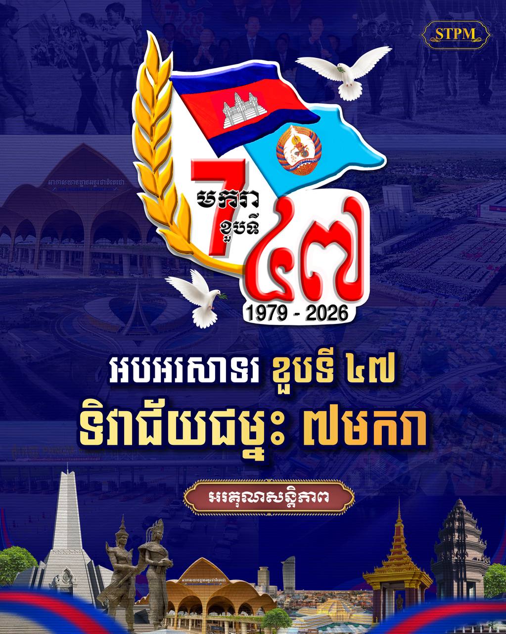 (ភ្នំពេញ)៖ សម្តេចបវរធិបតី ហ៊ុន ម៉ាណែត នាយករដ្ឋមន្ត្រីនៃកម្ពុជា នៅព្រឹកថ្ងៃទី៧ ខែមករា ឆ្នាំ២០២៦នេះ បានបង្ហោះសារអបអរសាទរខួបទី៤៧ (៧ មករា ១៩៧៩ – ៧ មករា ២០២៦) នៃទិវាជ័យជម្នះ ៧ មករា ថ្ងៃកំណើតទី២ របស់យើងទាំងអស់គ្នា។