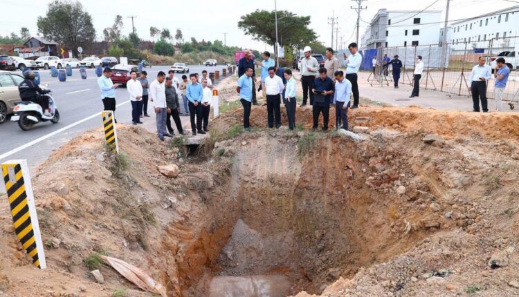 រដ្ឋមន្រ្តីក្រសួងសាធារណការ ចុះពិនិត្យទីតាំងដីច្រោះកណ្តាលទ្រូងផ្លូវ នៅសង្កាត់បិតត្រាំង ក្រុងព្រះសីហនុ