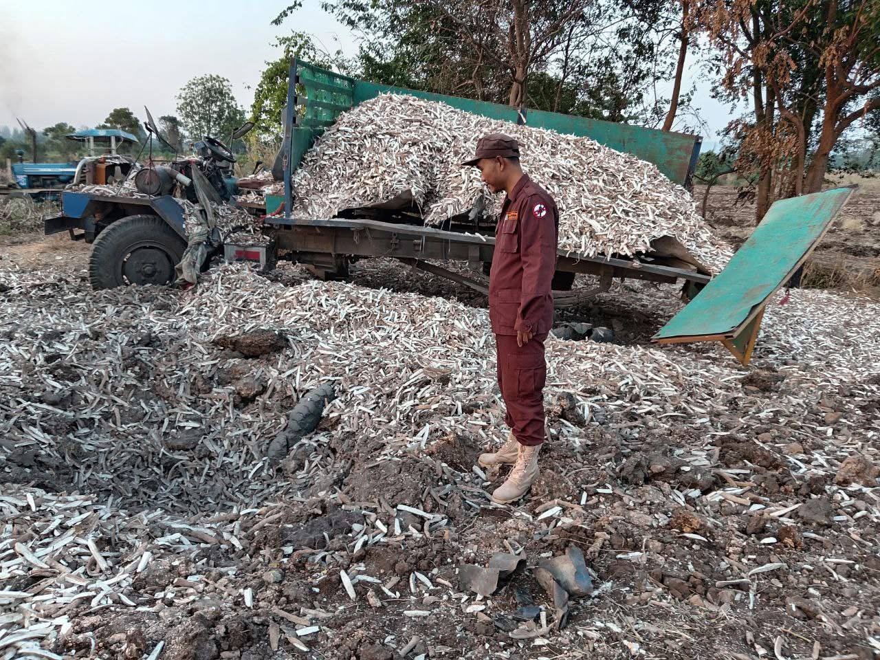 (បាត់ដំបង)៖ រថយន្តច្នៃដឹកដំឡូងមីចេញពីចម្ការ បានបរកិនប៉ះលើមីនតោនបណ្តាលឲ្យផ្ទុះនៅថ្ងៃទី០៩ ខែមករា ឆ្នាំ២០២៦ ស្ថិតក្នុងភូមិវាលវង់ ឃុំតាស្តា ស្រុកសំពៅលូន ខេត្តបាត់ដំបង។