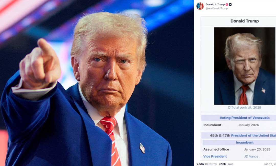 ប្រធានាធិបតីអាមេរិក លោក ដូណាល់ ត្រាំ បានបង្កើនជំហររដ្ឋបាលរបស់លោកលើប្រទេសវ៉េណេស៊ុយអេឡា ដោយបានបង្ហោះរូបភាពកែច្នៃរបស់លោកដែលមានស្លាកឈ្មោះថាជា «ប្រធានាធិបតីស្ដីទីនៃវ៉េណេស៊ុយអេឡា» នៅលើបណ្តាញសង្គម Truth Social។