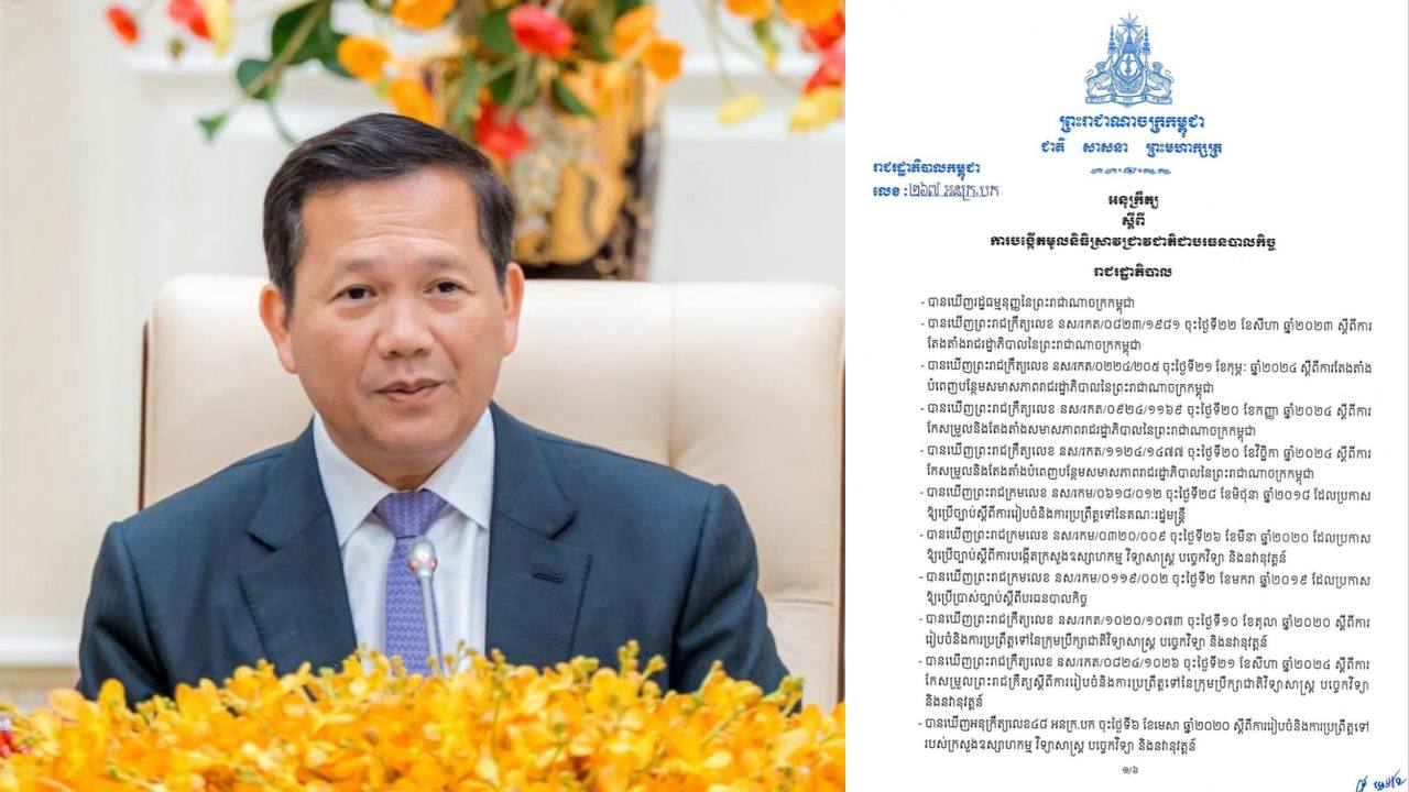 ខាងក្រោមនេះជាអនុក្រឹត្យរបស់សម្តេចបវរធិបតី ហ៊ុន ម៉ាណែត៖