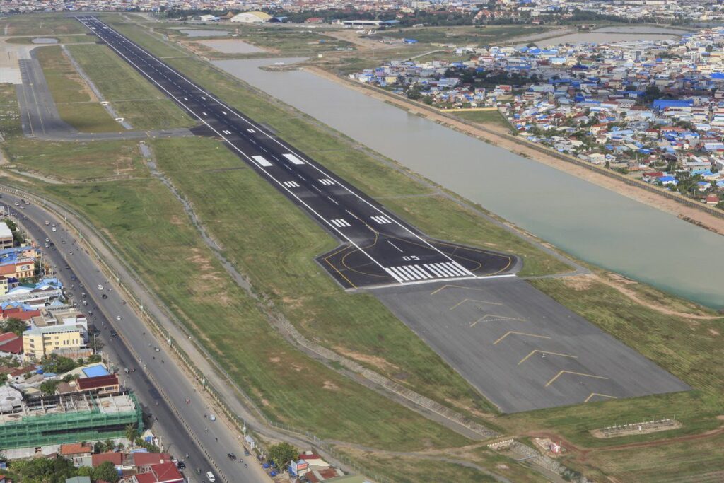 អាកាសយានដ្ឋានអន្តរជាតិភ្នំពេញ ត្រូវបានកសាងឡើងនៅឆ្នាំ ១៩៥៤ លើផ្ទៃដី ៣៨៦ ហិកតា ស្ថិតនៅខណ្ឌពោធិ៍សែនជ័យ រាជធានីភ្នំពេញ៕