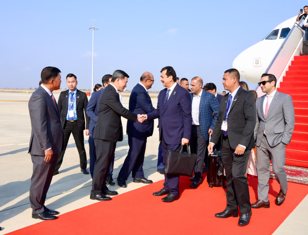 ដំណើរអញ្ជើញដល់របស់ប្រធានព្រឹទ្ធសភាប៉ាគីស្ថាននៅឯព្រលានយន្តហោះអន្តរជាតិតេជោ អញ្ជើញទទួលដំណើរដោយលោក ធន់ វឌ្ឍនា។