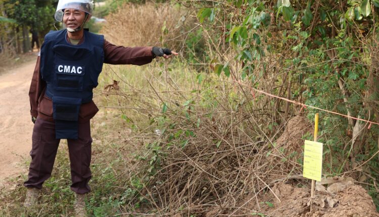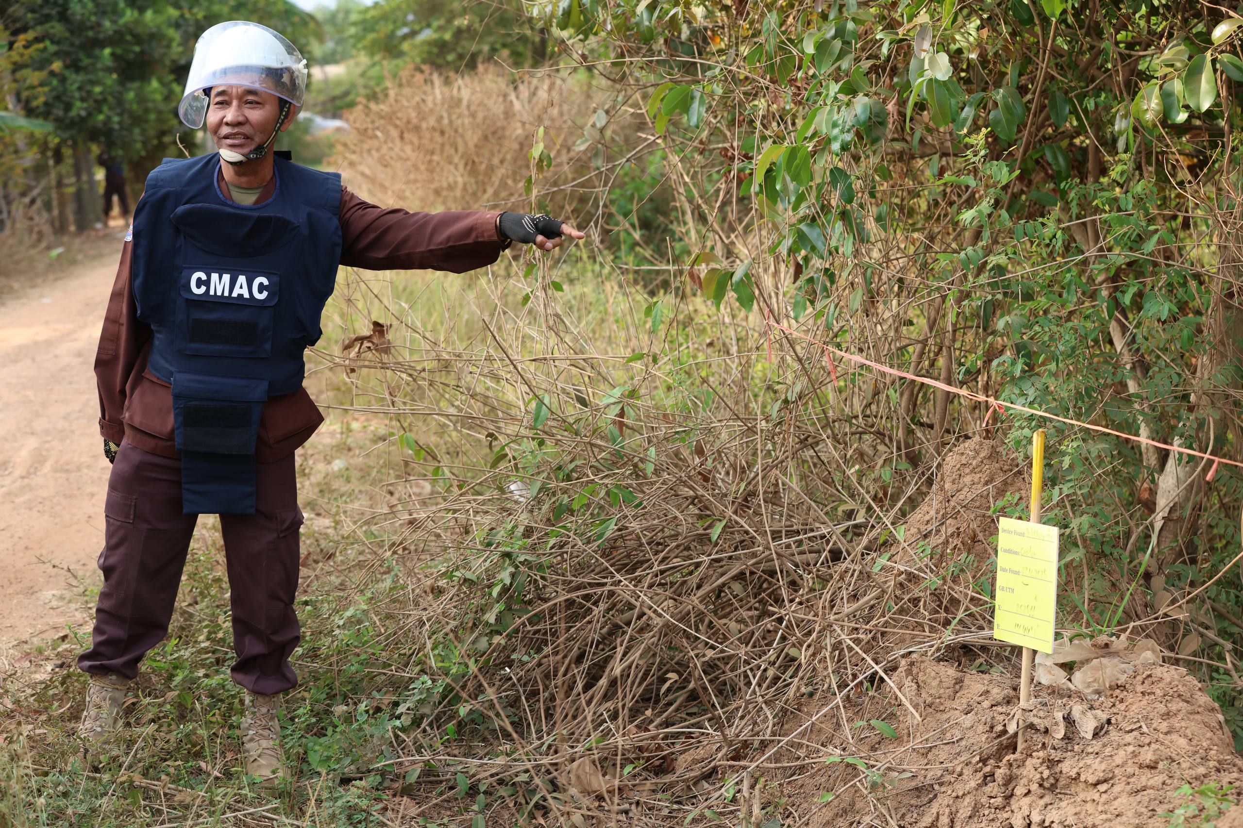 (AKP) លោកឧត្តមសេនីយ៍ត្រី នេត រដ្ឋា ប្រធានកងឯកភាពកំចាត់មីនទី១ នៃមជ្ឈមណ្ឌលសកម្មភាពកំចាត់មីនកម្ពុជា (CMAC) ធ្វើបទបង្ហាញទីតាំងរងផលប៉ះពាល់ដោយសារទម្ងន់គ្រាប់ផ្លោង