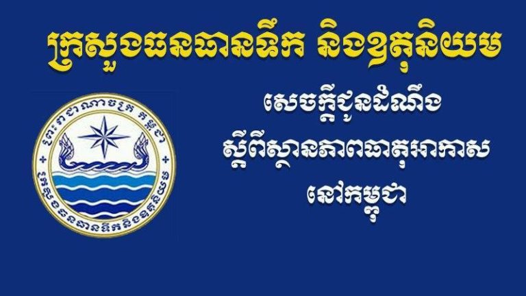 ក្រសួងធនធានទឹក ជូនដំណឹងអំពីស្ថានភាពធាតុអាកាសនៅកម្ពុជា សម្រាប់ថ្ងៃទី១០ ខែកុម្ភៈ ឆ្នាំ២០២៦