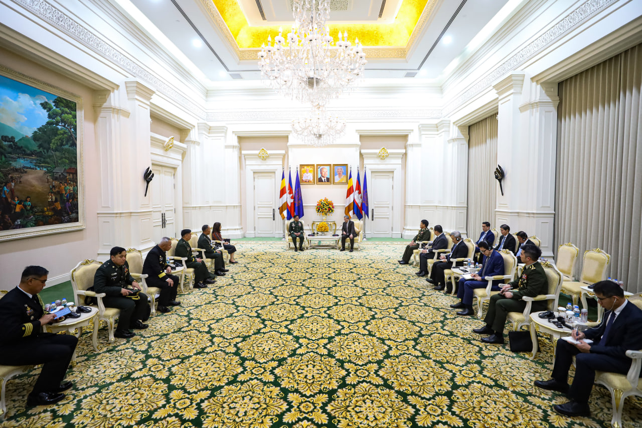 សម្ដេចមហាបវរធិបតី បានសម្ដែងនូវការស្វាគមន៍យ៉ាងកក់ក្ដៅចំពោះ លោកអគ្គមេបញ្ជា​ការ និងគណៈប្រតិភូ ដែលបានអញ្ជើញមកបំពេញទស្សនកិច្ចនៅកម្ពុជា និងរីករាយ ដែល​បានជួបជាមួយអគ្គមេបញ្ជាការជាថ្មីម្តងទៀត។ សម្ដេចមហាបវរធិបតី ក៏បានសម្ដែង​នូវការពេញចិត្ត និងវាយតម្លៃខ្ពស់ចំពោះវឌ្ឍនភាពនៃទំនាក់ទំនង និងកិច្ចសហប្រតិ​បត្តិ​ការ​ក្នុងវិស័យការពារជាតិ នៃប្រទេសទាំងពីរ ជាពិសេសកិច្ចសហប្រតិបត្តិការ ក្នុងការ​ចែក​រំលែកបទពិសោធន៍ និងការកសាងសមត្ថភាពរវាងកងទ័ពនៃប្រទេសទាំងពីរ។