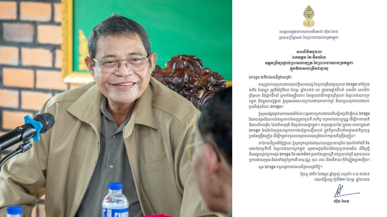 សម្តេចតេជោ ហ៊ុន សែន ផ្ញើសារលិខិតជូនពរ ឯកឧត្តម កែ គឹមយ៉ាន ឧត្តមប្រឹក្សាផ្ទាល់ព្រះមហាក្សត្រ ក្នុងឱកាសចម្រើនជន្មាយុ