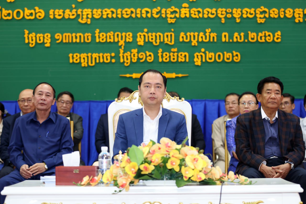 កិច្ចប្រជុំនេះធ្វើឡើងនៅព្រឹកថ្ងៃទី១៦ ខែមីនា ឆ្នាំ២០២៦ នាសាលមហោស្រពខេត្តក្រចេះ ដោយមានការចូលរួមពីថ្នាក់ដឹកនាំ សមាជិកក្រុមការងាររាជរដ្ឋាភិបាលចុះមូលដ្ឋានខេត្ត មន្ត្រីពាក់ព័ន្ធ និងតំណាងអាជ្ញាធរមូលដ្ឋាន ដើម្បីពិនិត្យវាយតម្លៃលទ្ធផលការងារដែលសម្រេចបានក្នុងឆ្នាំ២០២៥ ព្រមទាំងពិភាក្សាអំពីបញ្ហាប្រឈមនានា និងដាក់ចេញនូវទិសដៅការងារសំខាន់ៗសម្រាប់ការអនុវត្តបន្តនៅឆ្នាំ២០២៦។
