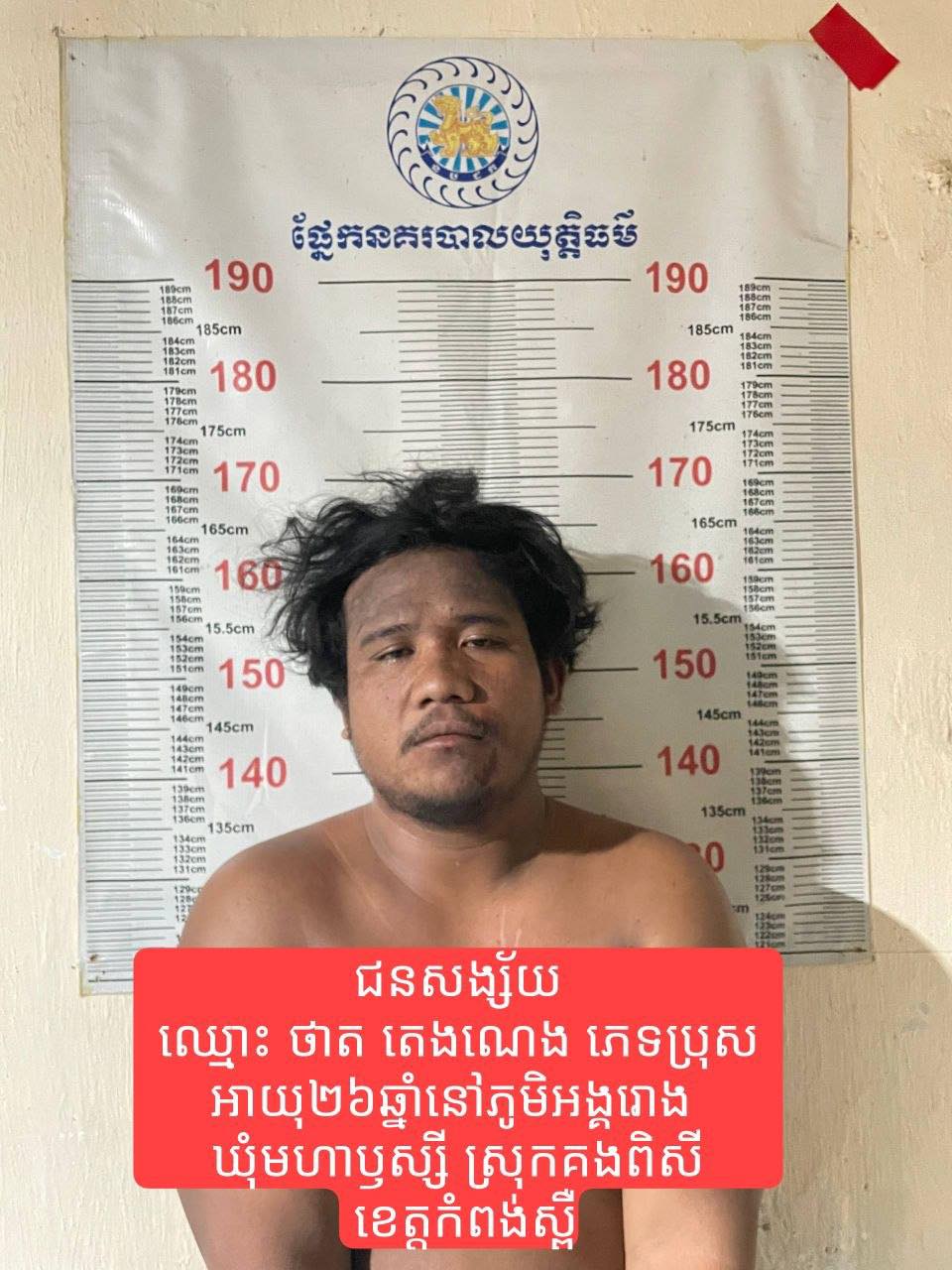 (កំពង់ស្ពឺ)៖ ដោយទទួលបានបញ្ជាដឹកនាំពីលោកឧត្ដមសេនីយ៍ទោ ឃឹម សុកខៃ ស្នងការនគរបាលខេត្ដកំពង់ស្ពឺ កំលាំងនគរបាល ដឹកនាំដោយលោកវរសេនីយ៍ឯក យ៉ាង សុខលី អធិការនគរបាលស្រុកគងពិសី បានធ្វេីការសហការជាមួយកំលាំងនគរបាលស្នងការដ្ឋាននគរបាលខេត្ដព្រៃវែង ក្រោមការបញ្ជាការលោកឧត្តមសេនីយ៍ទោ ឈឿន ប៊ុនឆន ស្នងការនគរបាលខេត្តព្រៃវែង ឃាត់ខ្លួនបក្ខពួកមុខសញ្ញា(អ្នកទទួលផលចោរកម្ម)ទិញរថយន្ដដែលចោរបានលួចយកមកពីខេត្ដព្រៃវែង រថយន្ដ ម៉ាក Hyundai ទម្ងន់ ២,៥តោន ដែលទទួលទិញពីជនល្មើស ក្នុងតម្លៃ ១៦០០ដុល្លារ ហើយគាត់បានលក់បន្ត២៣០០ដុល្លាររថយន្ដគ្មានឯកសារច្បាប់ដេីម នៅចំណុចភូមិអង្គរោង ឃុំមហាឬស្សី ស្រុកគងពិសី ខេត្ដកំពង់ស្ពឺ កាលពីថៃ្ងទី៤ ខែមេសា ឆ្នាំ២០២៦។