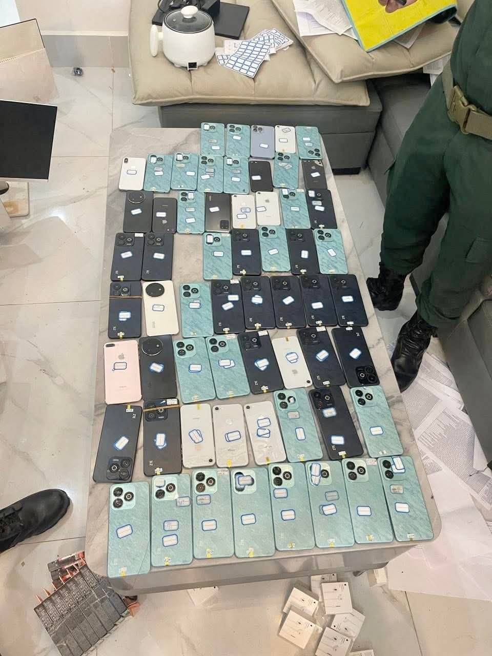 ដកហូតវត្ថុតាងរួមមាន៖ កុំព្យូទ័រលើតុ ១០គ្រឿង, Laptop១គ្រឿង, ទូរស័ព្ទដៃ៦១គ្រឿង, ដាវ ២ដើម, រថយន្ត ០១គ្រឿង និងសម្ភារៈប្រើប្រាស់មួយចំនួនទៀត។