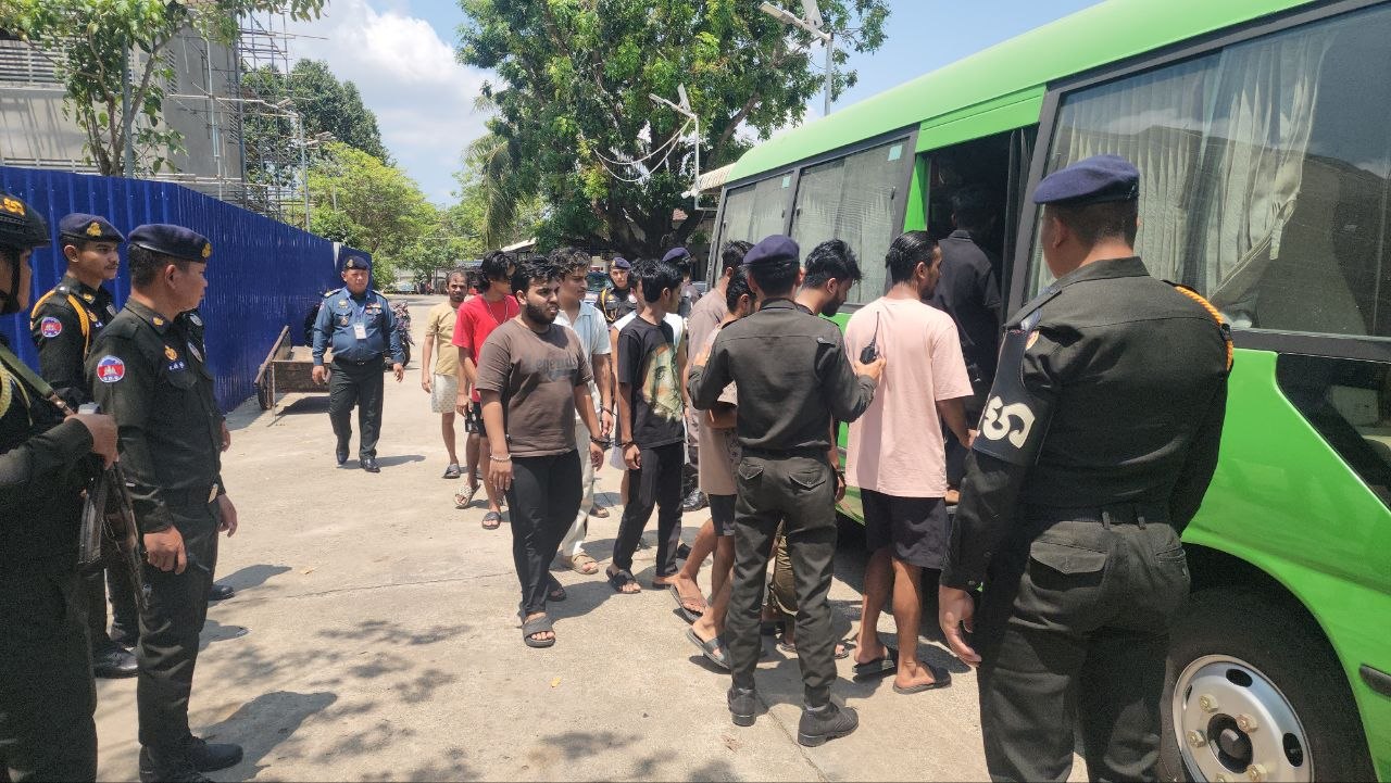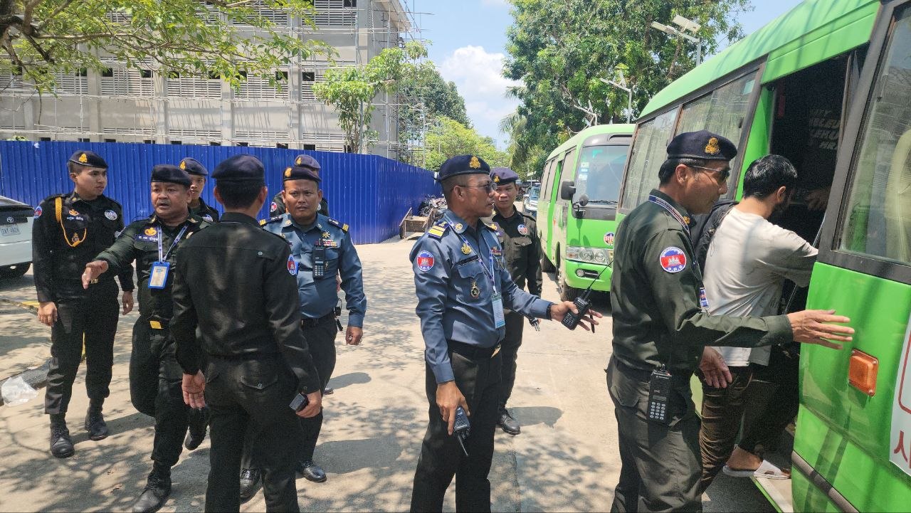 (ព្រះសីហនុ)៖ ជនបរទេសចំនួន ៤៩នាក់ ដែលត្រូវបានបង្ក្រាបពាក់ព័ន្ធបទល្មើសឆបោកតាមប្រព័ន្ធបច្ចេកវិទ្យា (Online Scams) ត្រូវបានកម្លាំងអាវុធហត្ថខេត្តព្រះសីហនុ បញ្ជូនទៅកាន់ទីស្នាក់ការត្រៀមបណ្តេញចេញ។