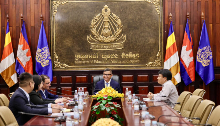 (ភ្នំពេញ)៖ លោកបណ្ឌិតសភាចារ្យ ហង់ជួន ណារ៉ុន ឧបនាយករដ្ឋមន្ត្រី រដ្ឋមន្ត្រីក្រសួងអប់រំ យុវជន និងកីឡា នារសៀលថ្ងៃទី៨ ខែមេសា ឆ្នាំ២០២៦ បានអនុញ្ញាតឱ្យលោក Laurent MESMANN ប្រធានគម្រោងសហប្រតិបត្តិការបារាំង នៃសាកលវិទ្យាល័យភូមិន្ទនីតិសាស្ត្រ និងវិទ្យាសាស្ត្រសេដ្ឋកិច្ច (RULE) ដឹកនាំប្រតិភូ ចូលជួបសម្តែងការគួរសម និងពិភាក្សាការងារលើរបៀបវារៈសំខាន់ៗមួយចំនួន។
