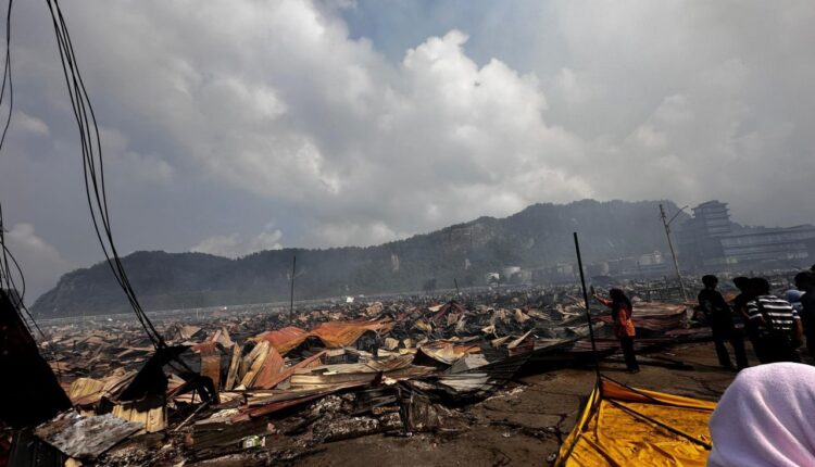 ផ្ទះឈើ ១០០០ ខ្នងត្រូវភ្លើងឆេះនៅក្នុងភូមិឆ្នេរសមុទ្រ លើកោះ Borneo ម៉ាឡេស៊ី