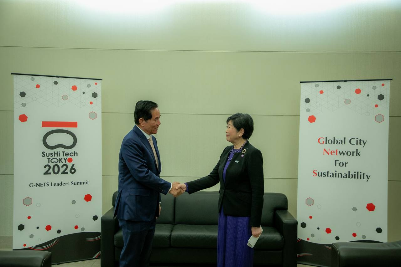 (ជប៉ុន-តូក្យូ)៖ លោក ឃួង ស្រេង អភិបាលរាជធានីភ្នំពេញ នារសៀលថ្ងៃទី២៧ ខែមេសា ឆ្នាំ២០២៦ បានអញ្ជើញចូលជួបពិភាក្សាការងារជាមួយលោកស្រី យូរីកូ កូអ៉ីកេ អភិបាលក្រុងតូក្យូ ក្នុងឱកាសដែលលោកអញ្ជើញបំពេញទស្សនកិច្ចផ្លូវការ និងចូលរួមកិច្ចប្រជុំកំពូលលើកទី៣ នៃបណ្តាញទីក្រុង សកលសម្រាប់ចីរភាព (3rd G-NETS Leaders Summit) នៅទីក្រុងតូក្យូ ប្រទេសជប៉ុន។