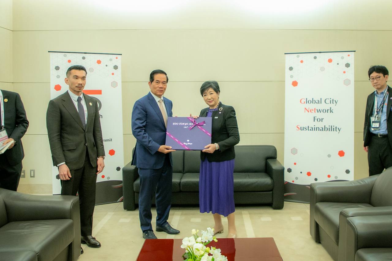 អភិបាលរាជធានីភ្នំពេញ ជួបពិភាក្សាការងារជាមួយអភិបាលក្រុងតូក្យូ ក្នុងឱកាសអញ្ជើញបំពេញទស្សនកិច្ចផ្លូវការ និងចូលរួមកិច្ចប្រជុំកំពូលលើកទី៣ នៃបណ្តាញទីក្រុង សកលសម្រាប់ចីរភាព